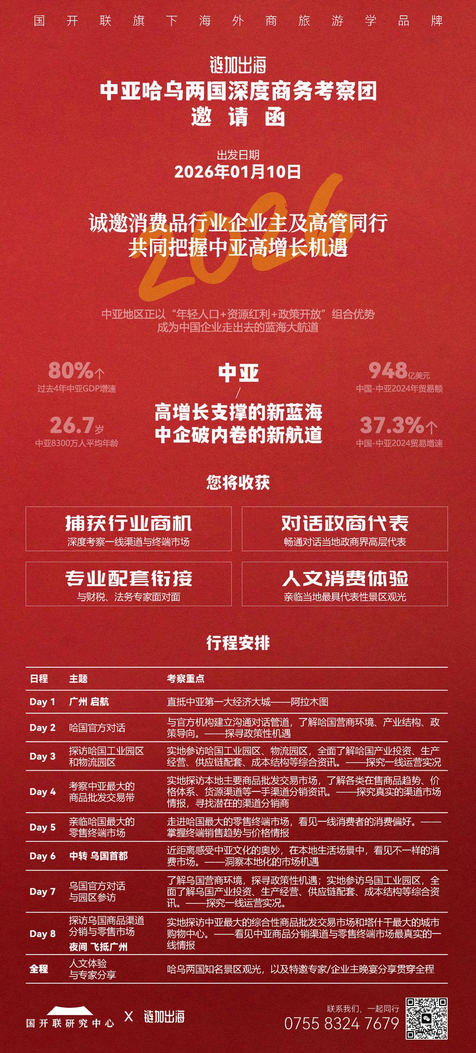 中亚哈乌两国深度商务考察团招募公告(2025年12月期)