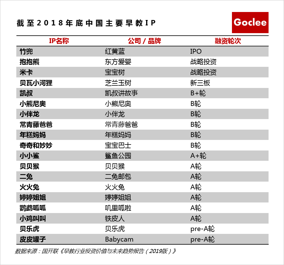 IP在文娱、旅游等领域的成功变现,使得越来越多的教育机构和创业公司以此为切入点探路早教发展新模式。根据国开联《早教行业投资价值与未来趋势报告(2019版)》统计,当前市面上有超过20家早教企业已成功培育、孵化出属于自己的早教IP。